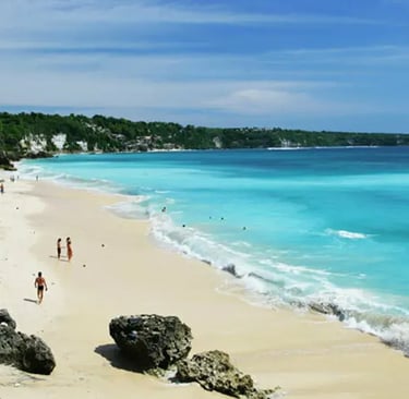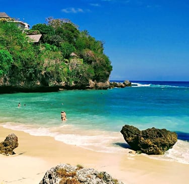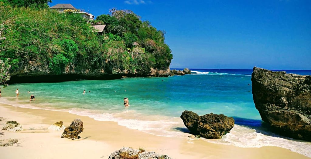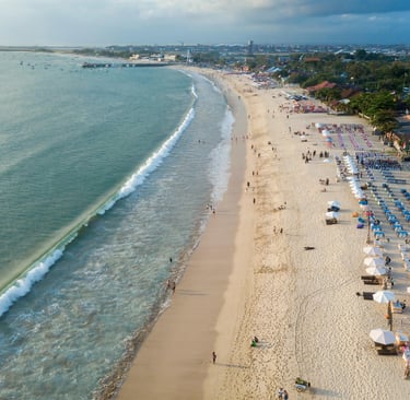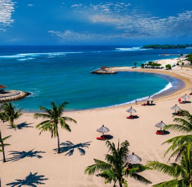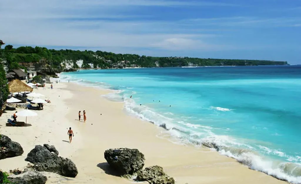 Située dans la station balnéaire de Nusa Dua, cette plage est connue pour ses eaux calmes et son sable clair.