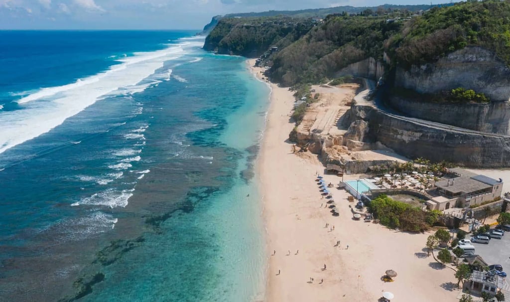 Bingin Beach est une plage spectaculaire située au pied des falaises de la péninsule de Bukit. Elle est particulièrement appréciée pour son ambiance détendue et ses couchers de soleil.
